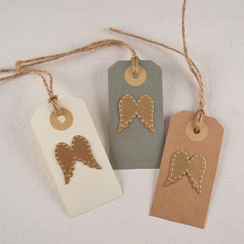 Het label is gemaakt van stevig karton en voorzien van een engelvleugel van metaalachtig materiaal met fijne details. Inclusief touwtje, zodat je het direct kunt gebruiken.