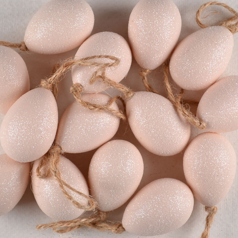 Kunststof Paasei met Glitter PoederrozeLicht kunststof paasei in een zachte poederroze tint, afgewerkt met fijne glitter en een jute touwtje om het direct op te hangen. Mooi als paasdecoratie in een tak, aan een cadeautje of als klein sfeervol accent in een…