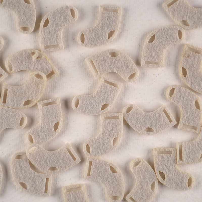 Vilt Figuurtje – BabyslofjeZacht vilt figuurtje in de vorm van een babyslofje, uitgevoerd in een neutrale beige tint.
