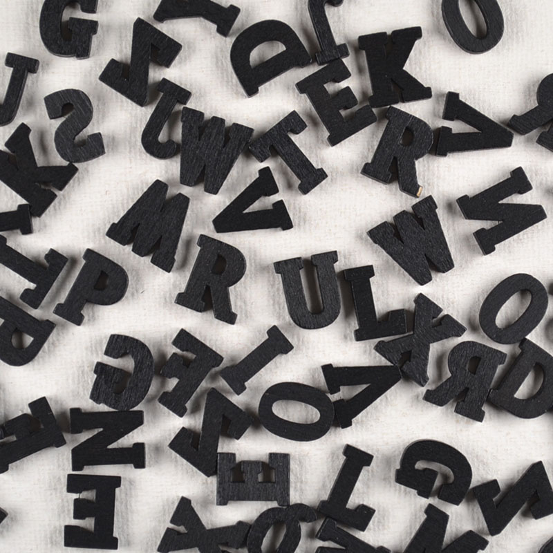 Houten letter zwart miniKleine houten letter in zwarte kleur, zonder gaatje. Mooi voor een naam, tekst, cadeaulabel, decoratie of ander creatief project met een stoere en rustige uitstraling.
