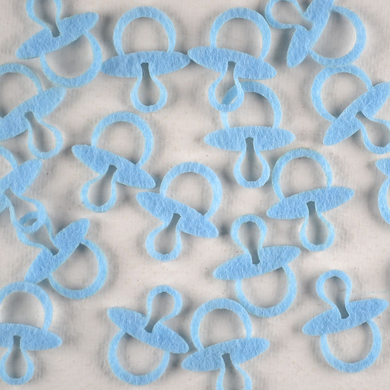 Vilt Figuurtje – FopspeenBlauw vilt figuurtje in de vorm van een fopspeen, licht en fijn van formaat.