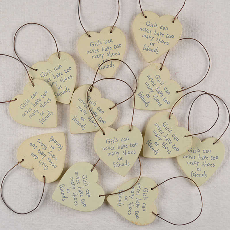 Houten Hart Tag - Girls ShoesHouten hart tag met de tekst Girls can never have too many shoes or friends, een vrolijk en herkenbaar detail voor een cadeautje.