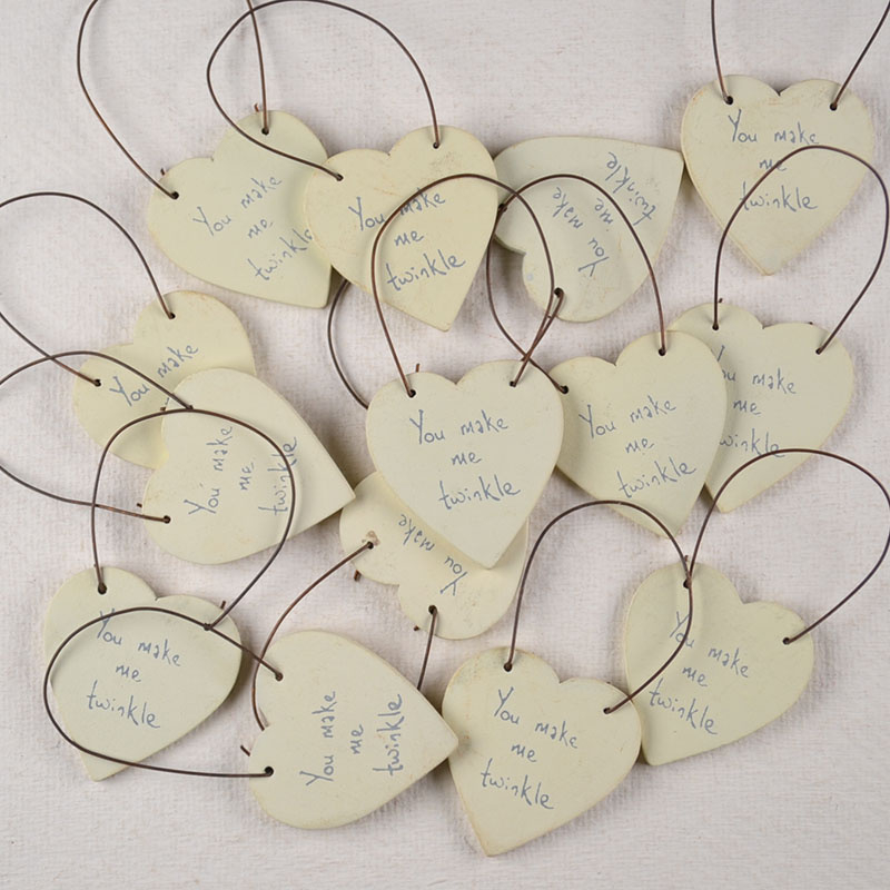 Houten Hart Tag - You make me twinkleDeze houten hart tag met de tekst You make me twinkle heeft een lieve en speelse uitstraling. Een subtiel detail dat een cadeautje net wat extra warmte geeft.