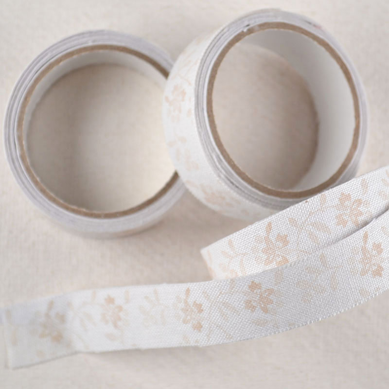 Stoffen Tape Naturel met Fijne BloemetjesNaturelkleurige stoffen tape met kleine bloemetjesprint in zachte tint. Geeft een natuurlijke en rustige look aan verpakkingen en creatieve details. Mooi bij kraft, jute en droogbloemen.