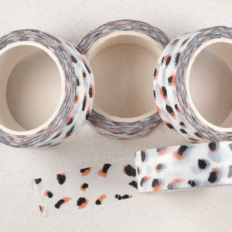 Washi Tape Wit met VlekjesprintWitte washi tape met speelse vlekjesprint in het zwart en een warme accentkleur. Trendy en net even anders — leuk voor moderne verpakkingen en creatieve projecten.