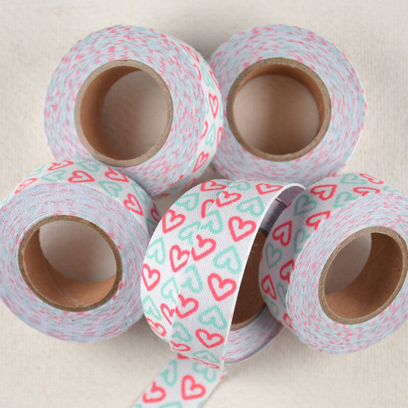 Stoffen Tape Hartjes Roze MintStoffen tape met speels hartjespatroon in roze en mint op een lichte ondergrond. Zelfklevend en soepel in gebruik — ideaal voor vrolijke accenten op kaartjes, verpakkingen en kleine presentjes.