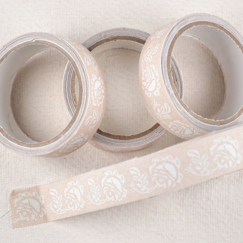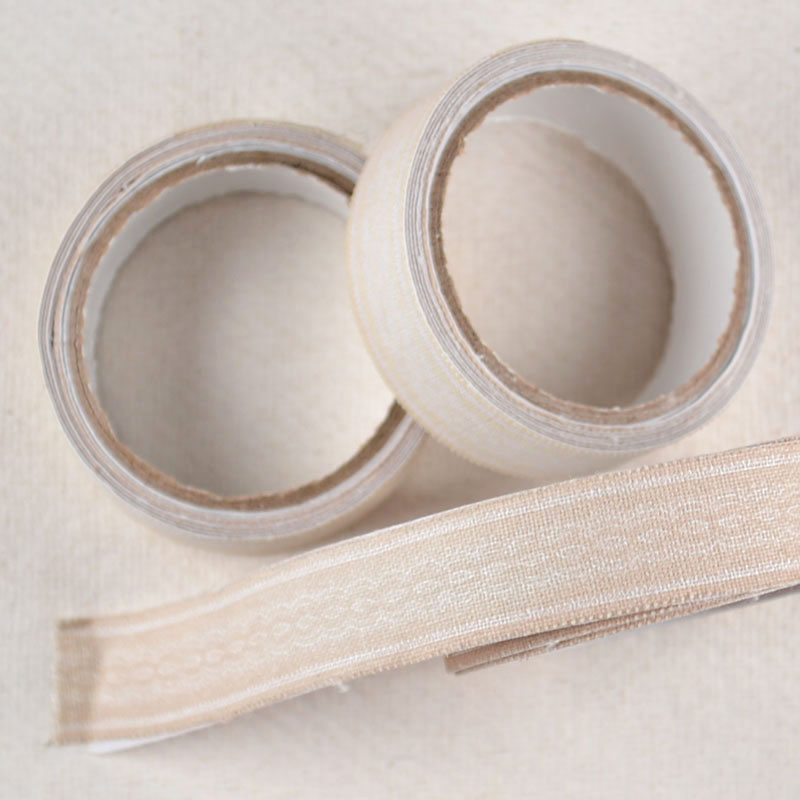 Stoffen Tape Beige Subtiel PatroonStoffen tape in zachte beige tint met een subtiel ingeweven patroon. Zelfklevend en decoratief — ideaal voor een rustige, stijlvolle afwerking van verpakkingen, kaartjes en labels.
