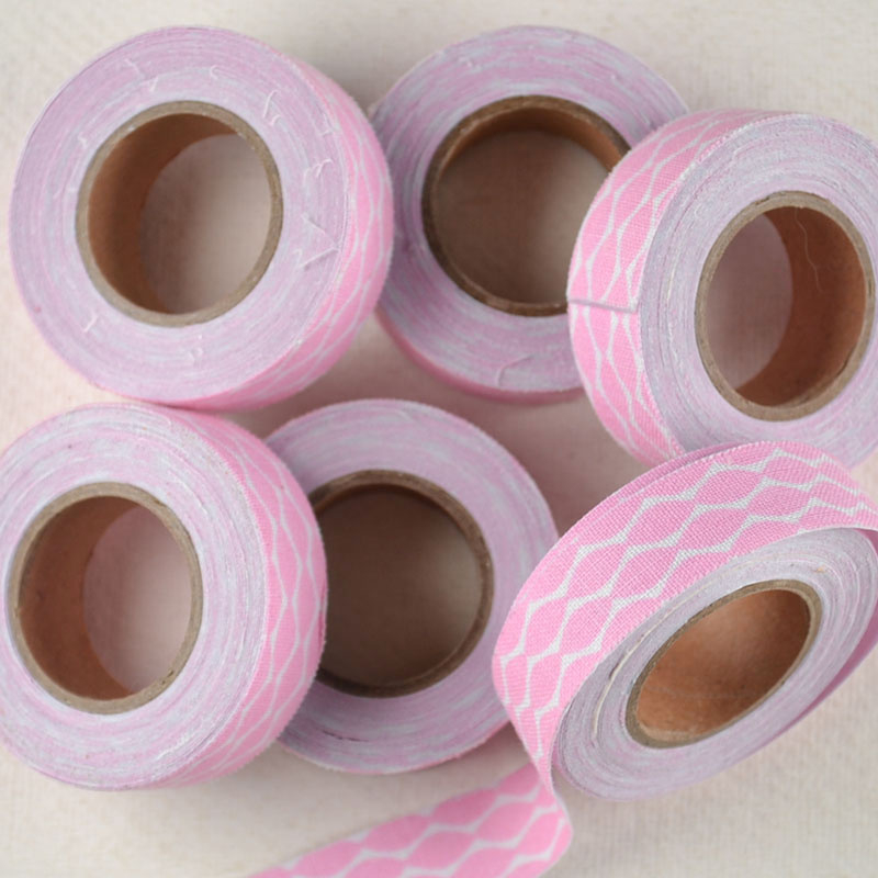 Stoffen Tape Roze PatroonRoze stoffen tape met fijn grafisch lijnpatroon. Zacht van uitstraling en handig in gebruik dankzij de plaklaag. Geeft een subtiel decoratief accent aan labels, doosjes en enveloppen.